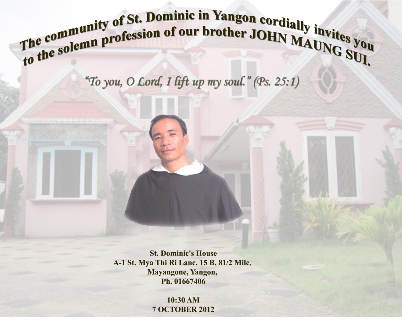 The invitation of our brothers in Hong Kong for the coming Profession and Vestition
