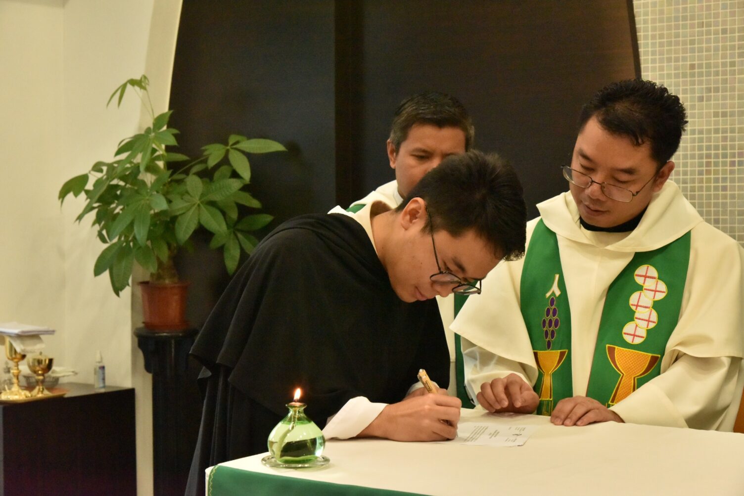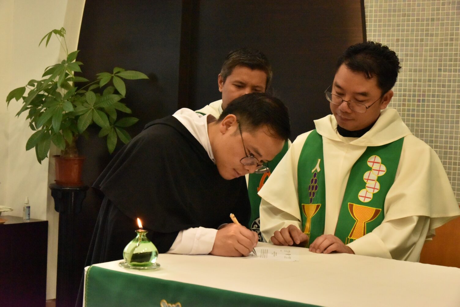 Five brothers from our Dominican community in Macau, namely, Rolindo Tilman, Xaverio Boe, John Ai, Peter Nyi and Ephraim Nay, renewed their religious profession on Tuesday, 20th of January 2026. The event took place within our conventual Mass, presided over by the Prior, Fr. Javier Gonzalez, and con-celebrated by Frs. Hilario Plureh, Lawrence The Reh, Paul Fan and Martin Bai, members of this community of St Dominic’s. Witnesses of the ceremony were all our student brothers, plus a few Sisters and Lay Dominicans who come regularly to our chapel.